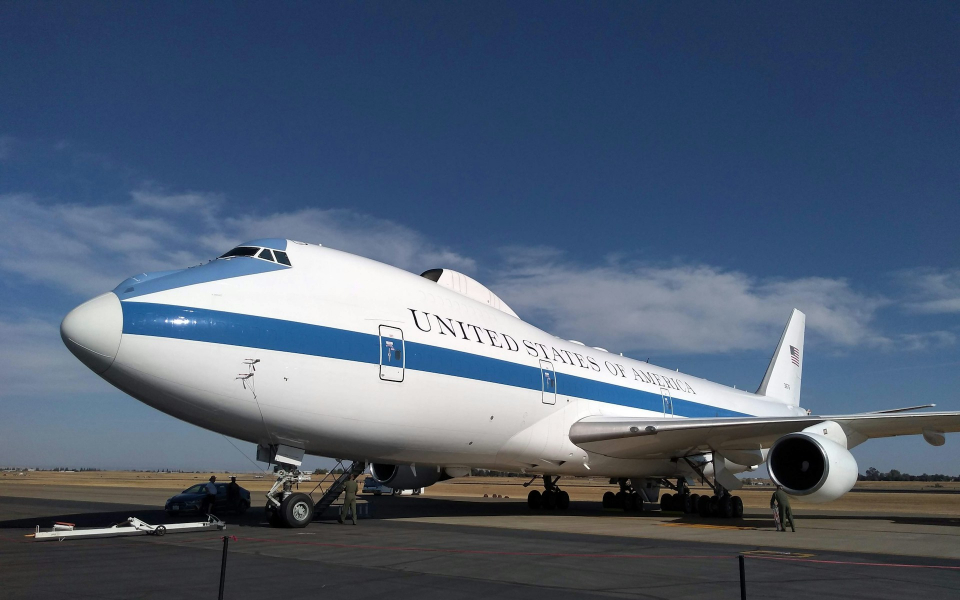 He was responding to a question from moderator Stephen Colbert on whether the doors of Air Force One stay on during flights. The aircraft operated as Air Force One and modified for presidential transport is manufactured by Boeing.